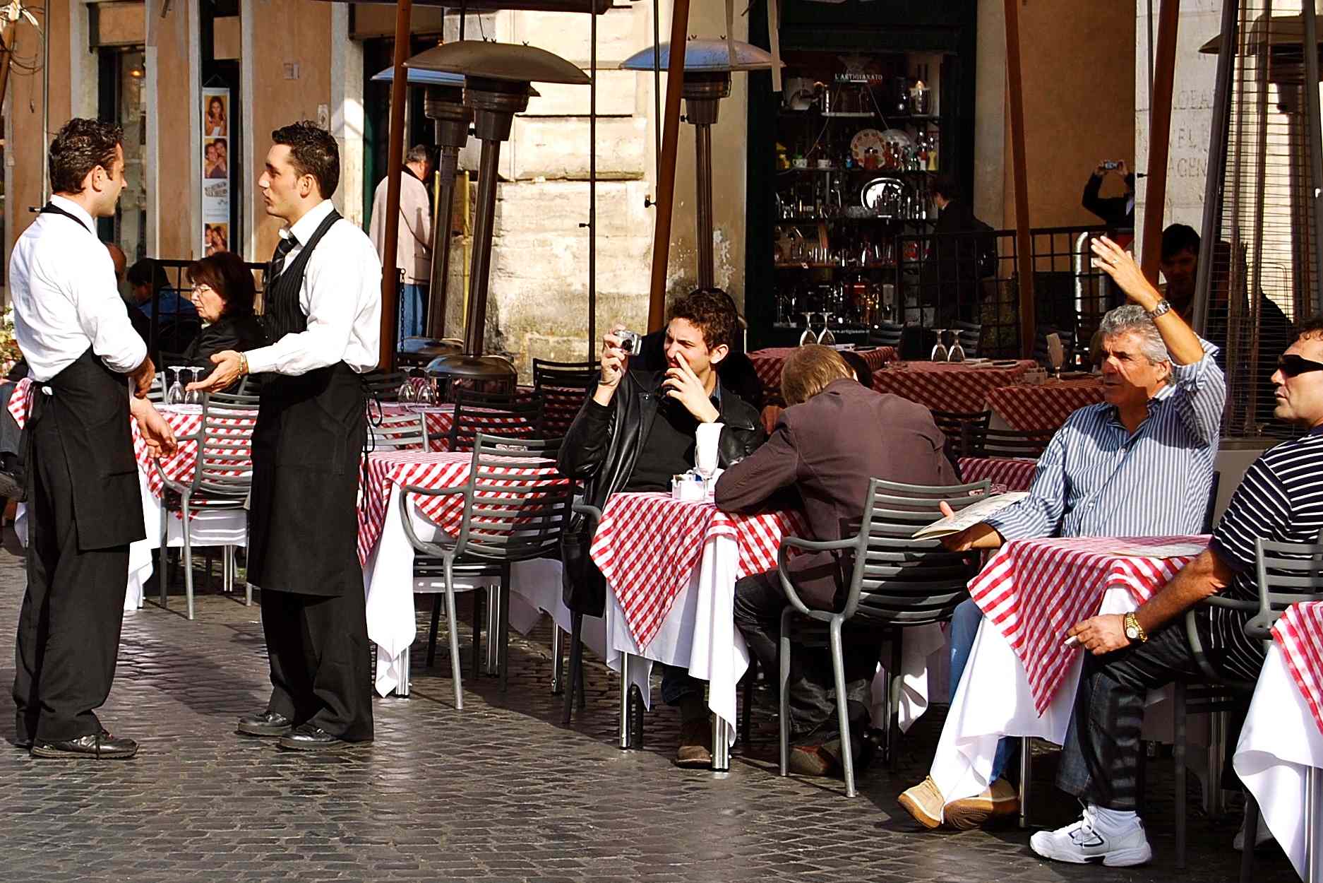 Previous Image Next Image Waiters and diners Streets of Rome Social sharing: Click to share on X (Opens in new window) X Click to share on Facebook (Opens in new window) Facebook Like Loading...