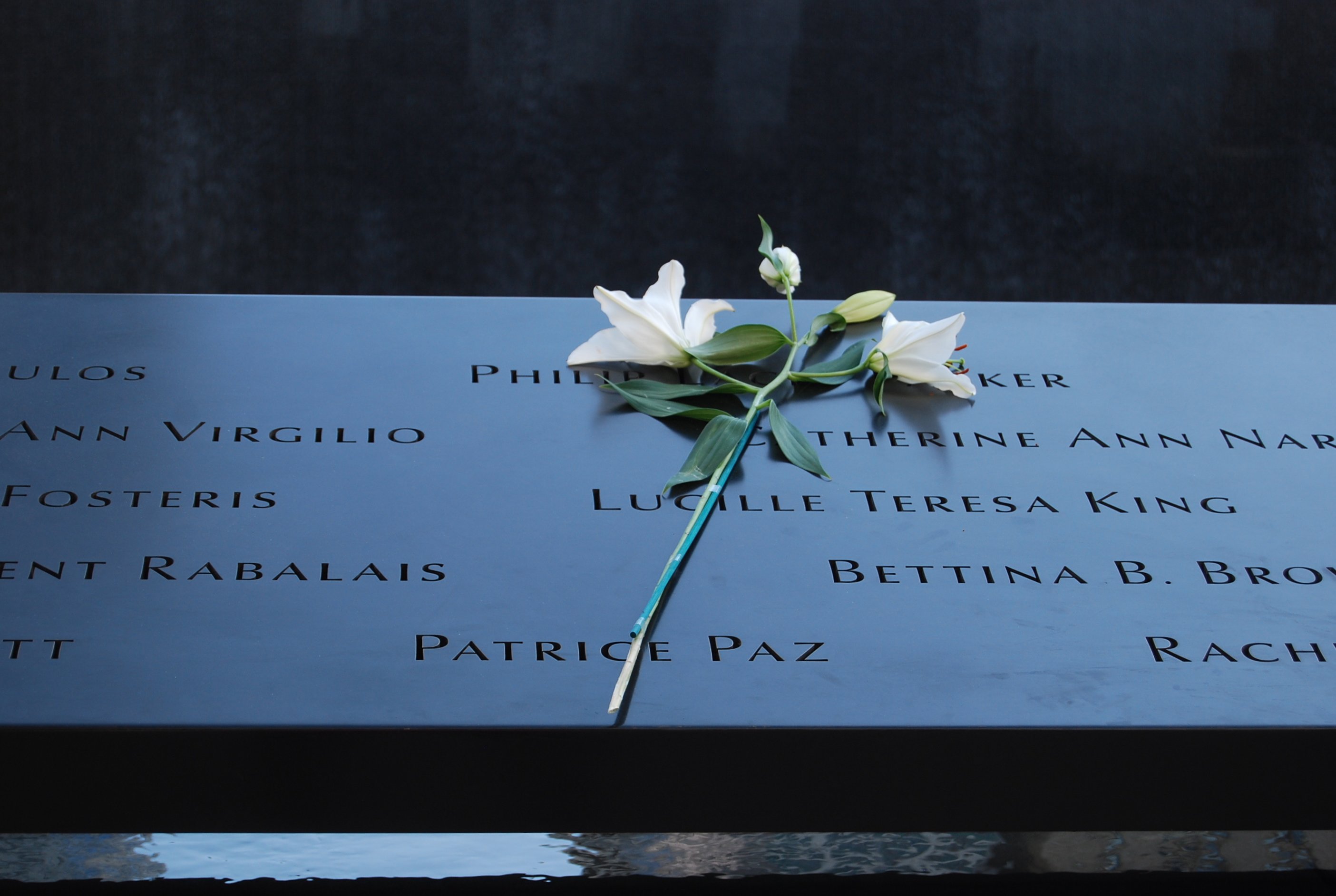 Flowers left for a loved one. On the birthday of each victim, memorial staff place a rose on their name.