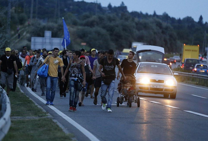 BBC journalist Matthew Price has been covering the story of Syrian (and other) refugees seeking asylum in Europe. Having been shut out of a train station in Budapest, Hungary, the refugees decided to walk around 170kms (105mi) to the Austrian border. Matthew walked with them.