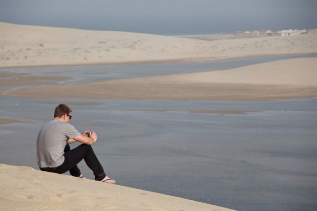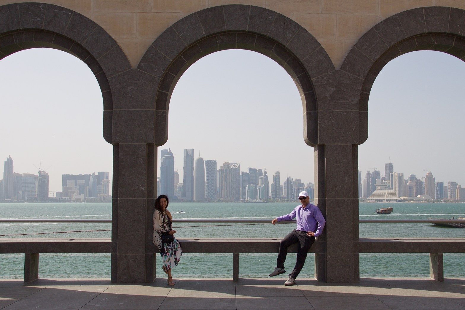 Z: During the first day in Qatar, we were lucky enough to be taken on a 4WD experience in the desert. I’d never seen anything like it before. Some of the sand dunes were fifty metres high and our driver would accelerate right over them and we’d slide down the other side. Afterwards, we jumped into the warm waters of the Gulf and sand-boarded down the steep dunes overhanging the beach. We dined on traditional Qatari fare and spent the evening staring at the stars and attempting to name a country from each letter of the alphabet.
