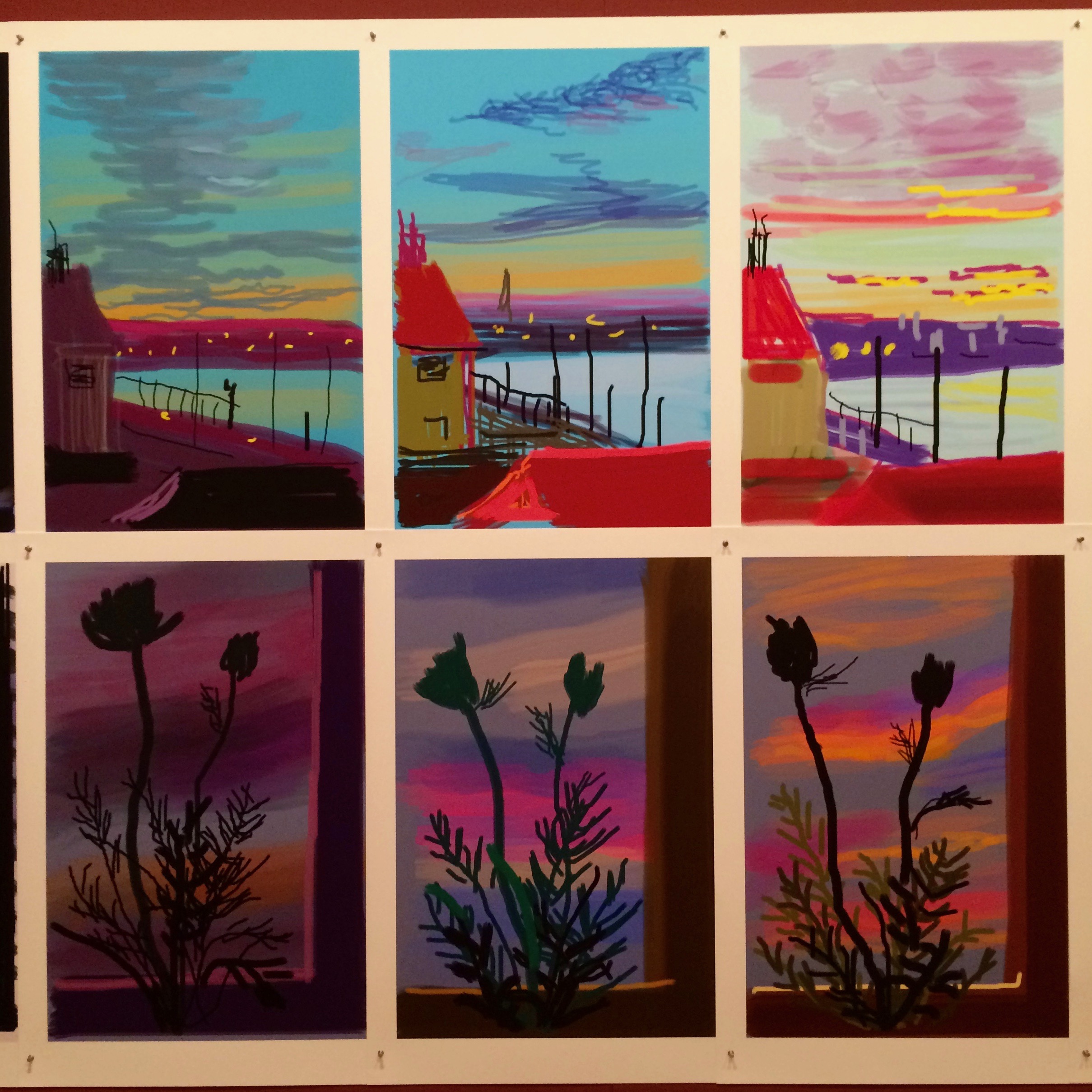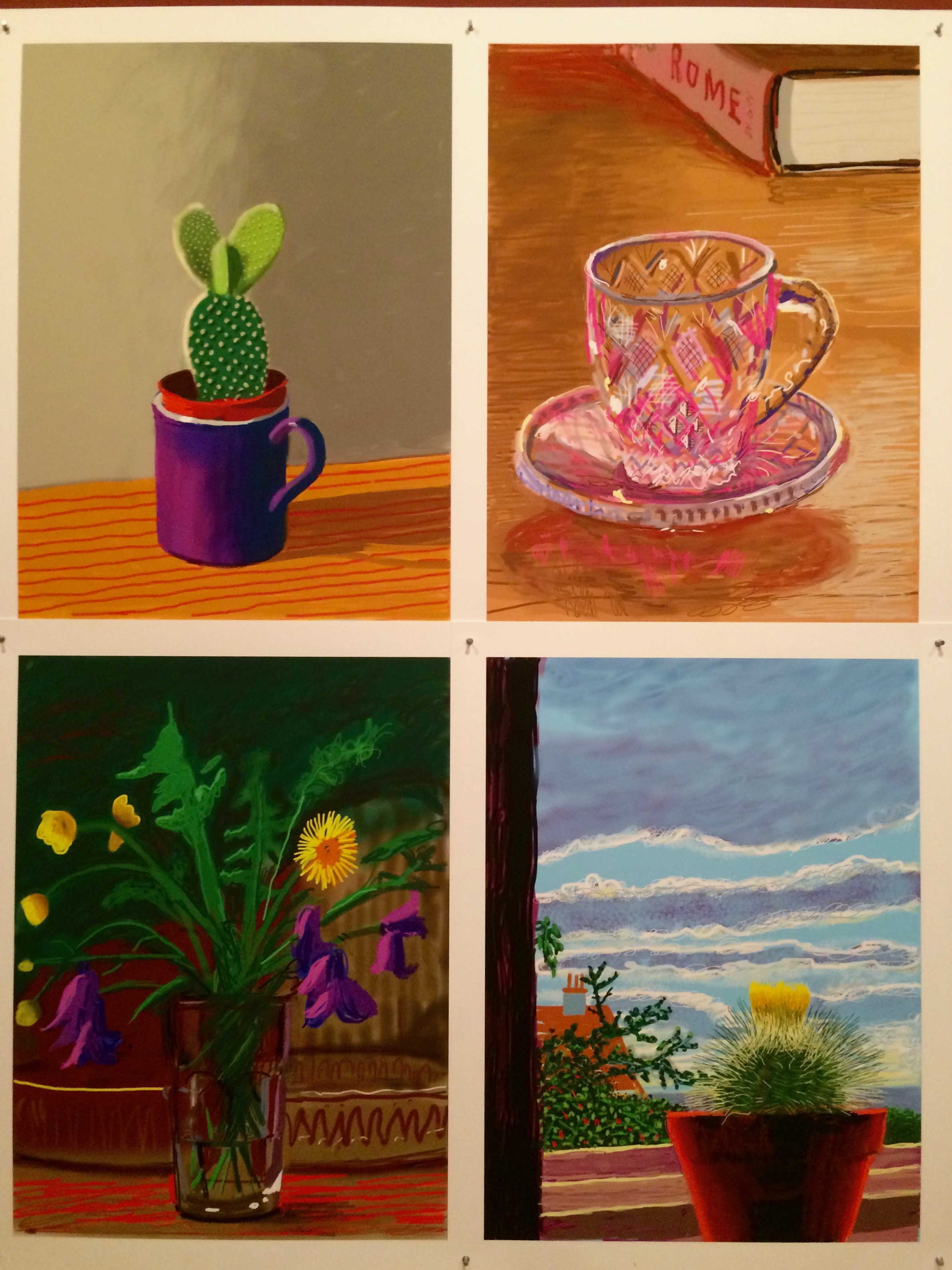 I came across these photos on the weekend; photos taken at the ‘Current’ exhibition at NGV of David Hockney’s work. David Hockney is now 79 years old, and although his brights are as bright as ever, he has adapted to the times, and worked with electronic ‘brushes’ on iPads and iPhones. It is a lesson to keep on reinventing, or keeping pace with the technology.