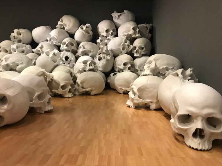 Ron Mueck’s ‘Mass’ 2016-17. A gallery filled with 100 large-scale sculptures of the human skull.