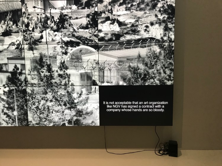 Richard Mosse, ‘Incoming’, which included commentary from Iranian refugee and former Manus Island detainee Behrouz Boochani: “It is not acceptable that an organization like NGV has signed a contract with a company whose hands are so bloody”